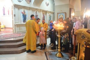 Затем была совершена вечерня с чином прощения, и в завершение богослужения клирик храма священник Николай Киреев обратился к верующим с проповедью.