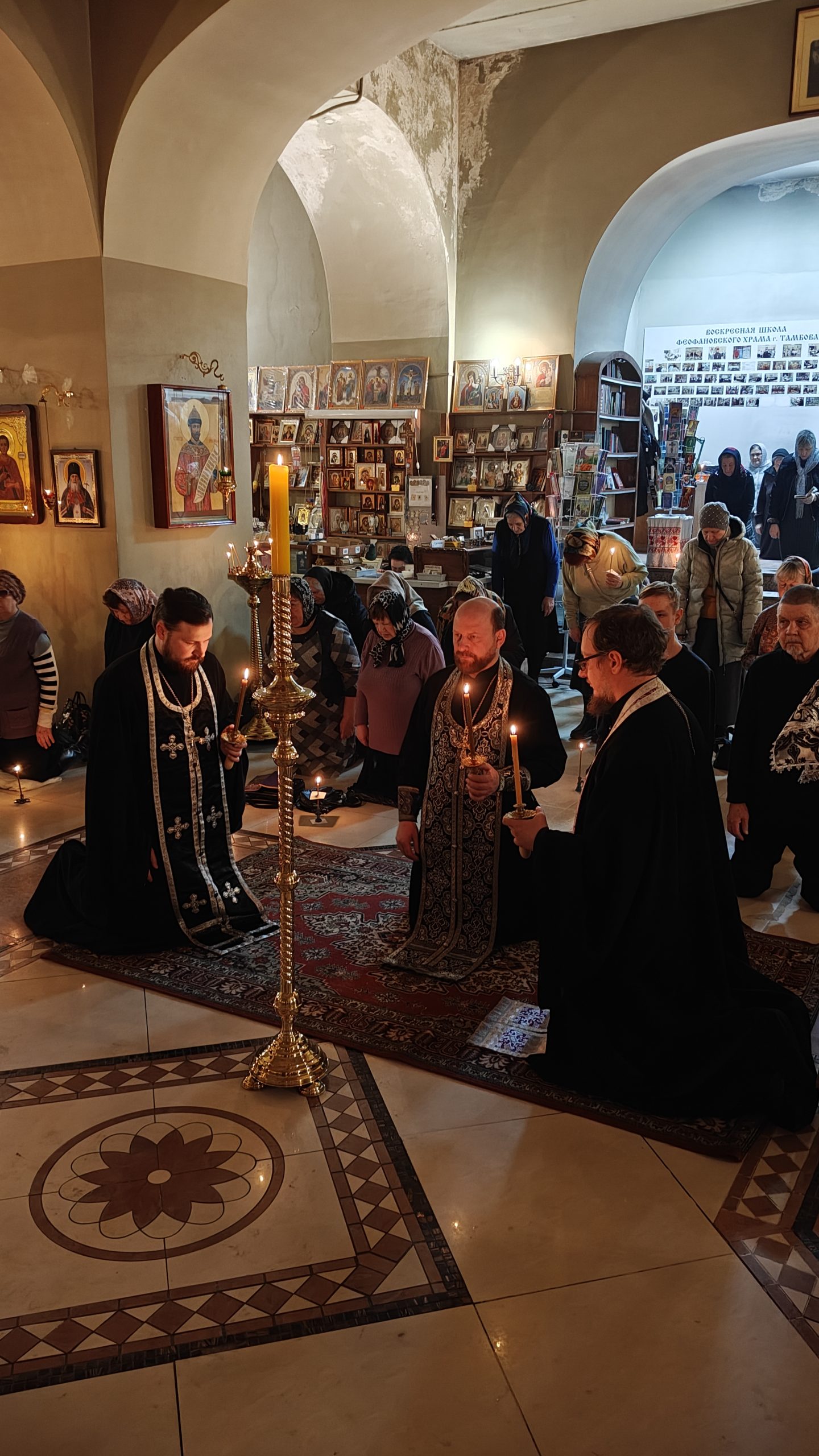24 февраля 2026 года, во вторник первой седмицы Великого поста в Феофановском храме города Тамбова было совершено Великое повечерие с чтением Великого покаянного канона прп. Андрея Критского. Богослужение совершил настоятель храма священник Димитрий Пимкин в сослужении клириков храма.