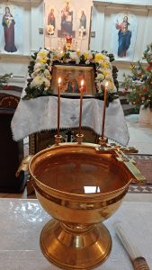 По заамвонной молитве под пение тропарей «Глас Господень на водах..» было совершено великое освящение воды, а затем праздничное славление.