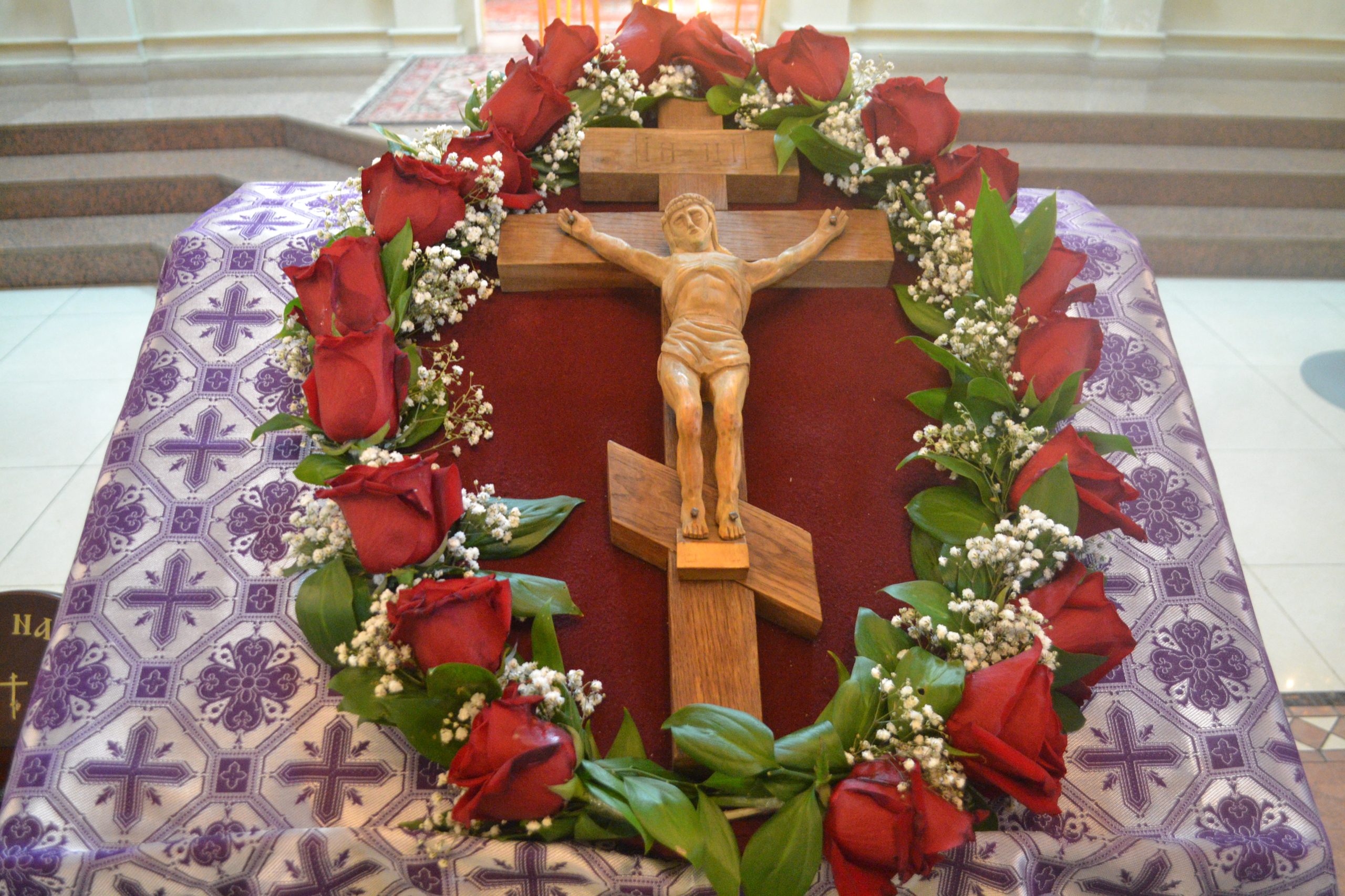 По окончании Литургии было совершено поклонение Честному и Животворящему Кресту Господню, после чего клирик храма иерей Николай Киреев обратился к прихожанам с проповедью.