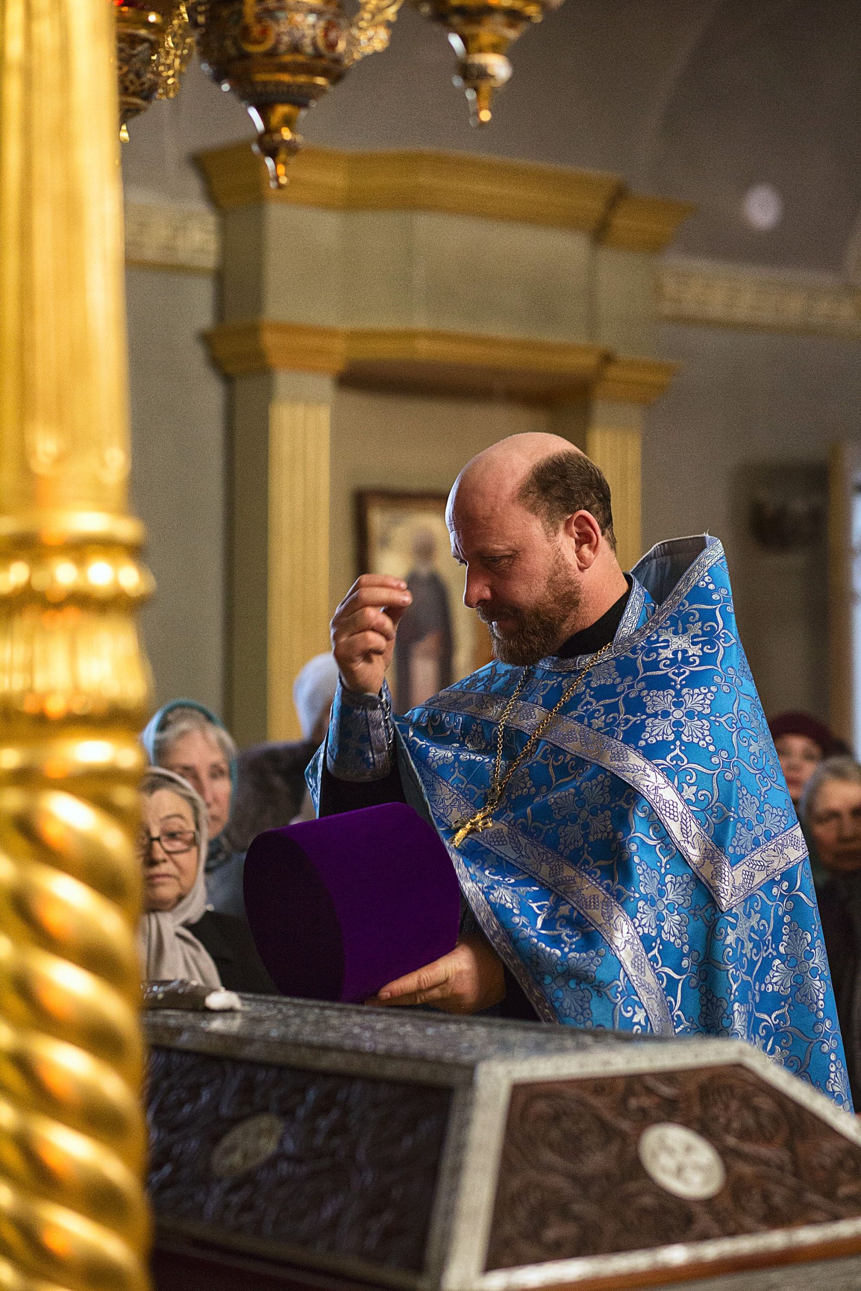 Богослужение совершил настоятель храма священник Димитрий Пимкин. За молебном возносились особые молитвы о благотворителях, предпринимателях, а также обо всех, кто имеет своё дело и участвует в делах милосердия и общественного служения.