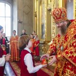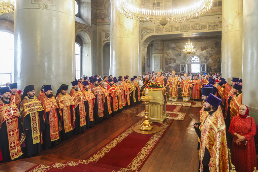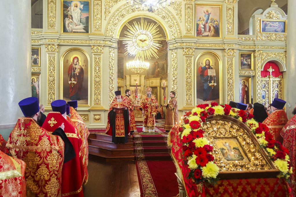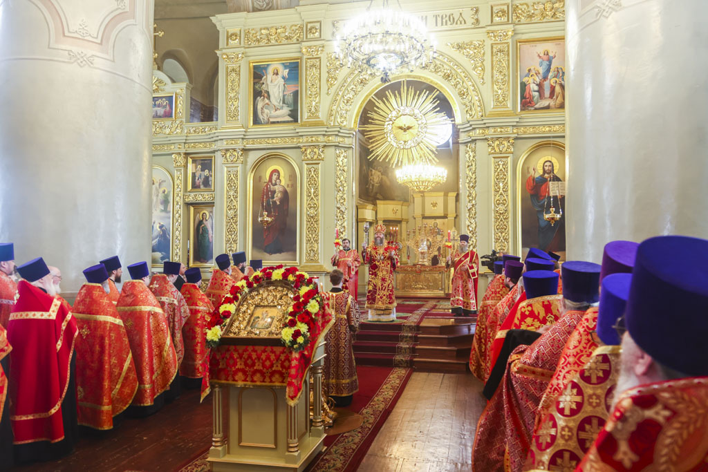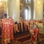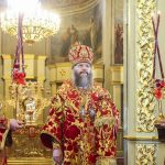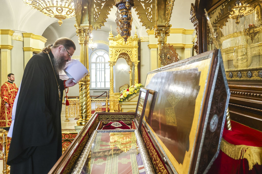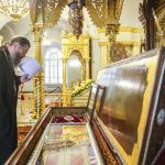 По прибытии в храм перед началом богослужения глава Тамбовской митрополии поклонился мощам святителя Питирима, епископа Тамбовского.