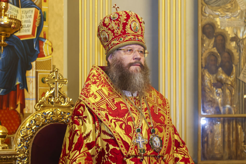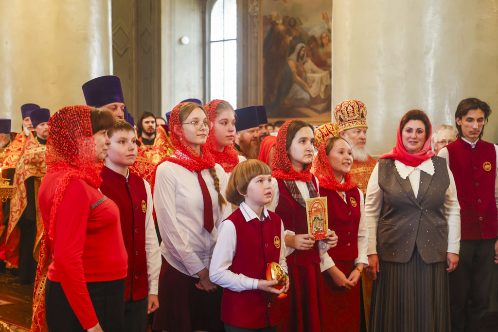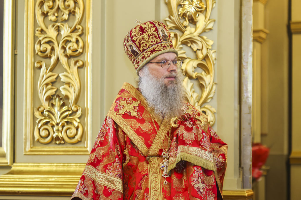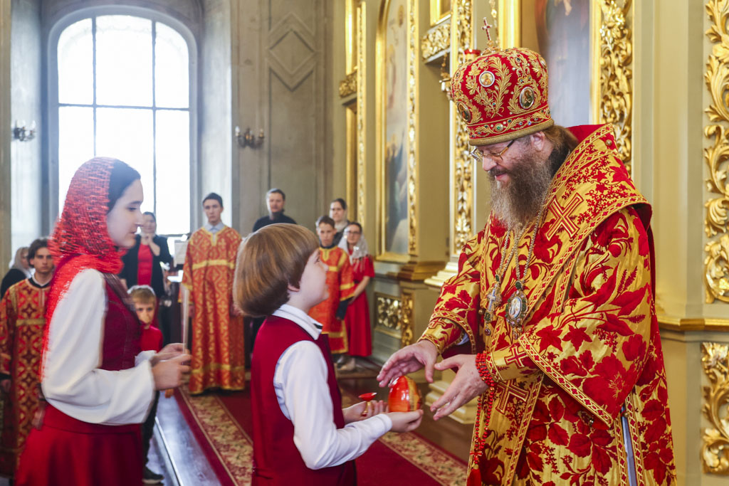 В завершение богослужения Его Высокопреосвященство поприветствовал всех собравшихся словами древнего апостольского приветствия: «Христос Воскресе!» и обратился к верующим с архипастырским словом.