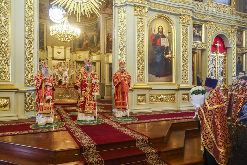 По завершении вечерни с поздравительным словом к Его Высокопреосвященству и всем присутствующим в соборе обратились епископ Уваровский и Кирсановский Игнатий и епископ Мичуринский и Моршанский Гермоген.