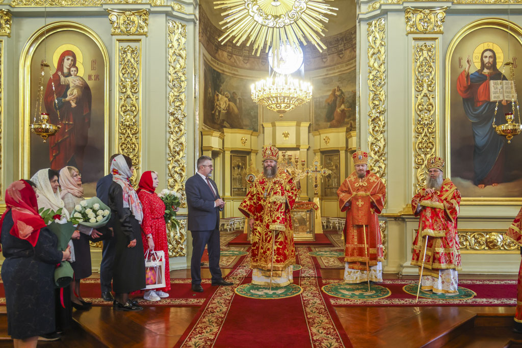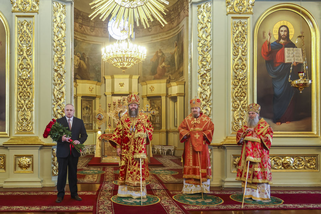 Митрополита Феодосия также поздравили высокие гости: В.Б. Пригорнев, А.Н. Кулагин, Н.А. Бурашникова.