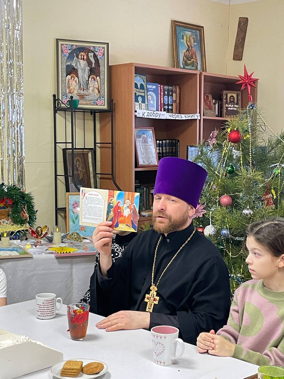 Отец Димитрий побеседовал с воспитанниками о духовном смысле праздника Сретения — встречи Богомладенца Христа с праведным Симеоном и пророчицей Анной в Иерусалимском храме. Настоятель рассказал детям о значении этой евангельской истории, подчеркнув важность живой встречи человека с Богом в своей жизни, верности и терпеливого ожидания, подобно праведному Симеону.