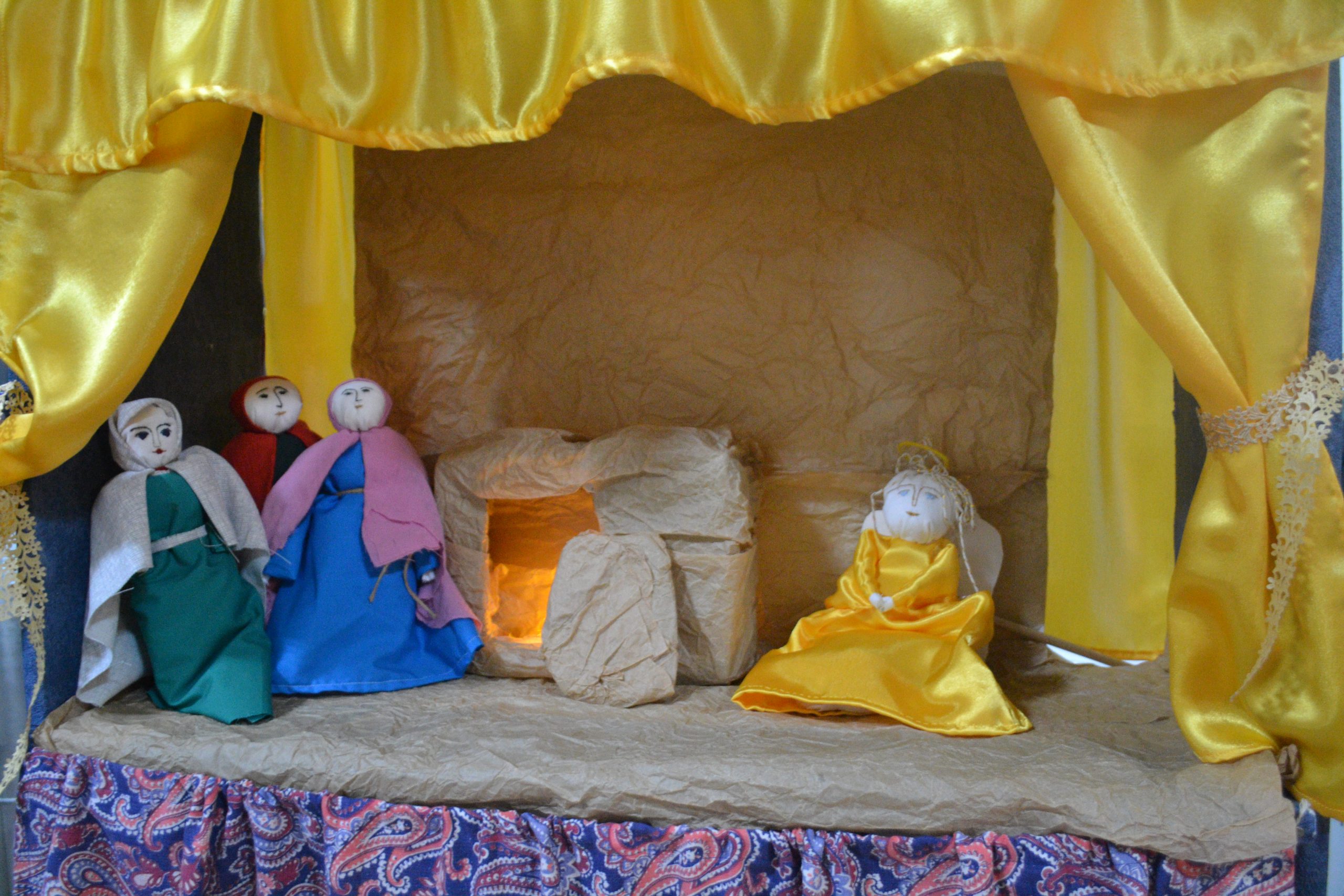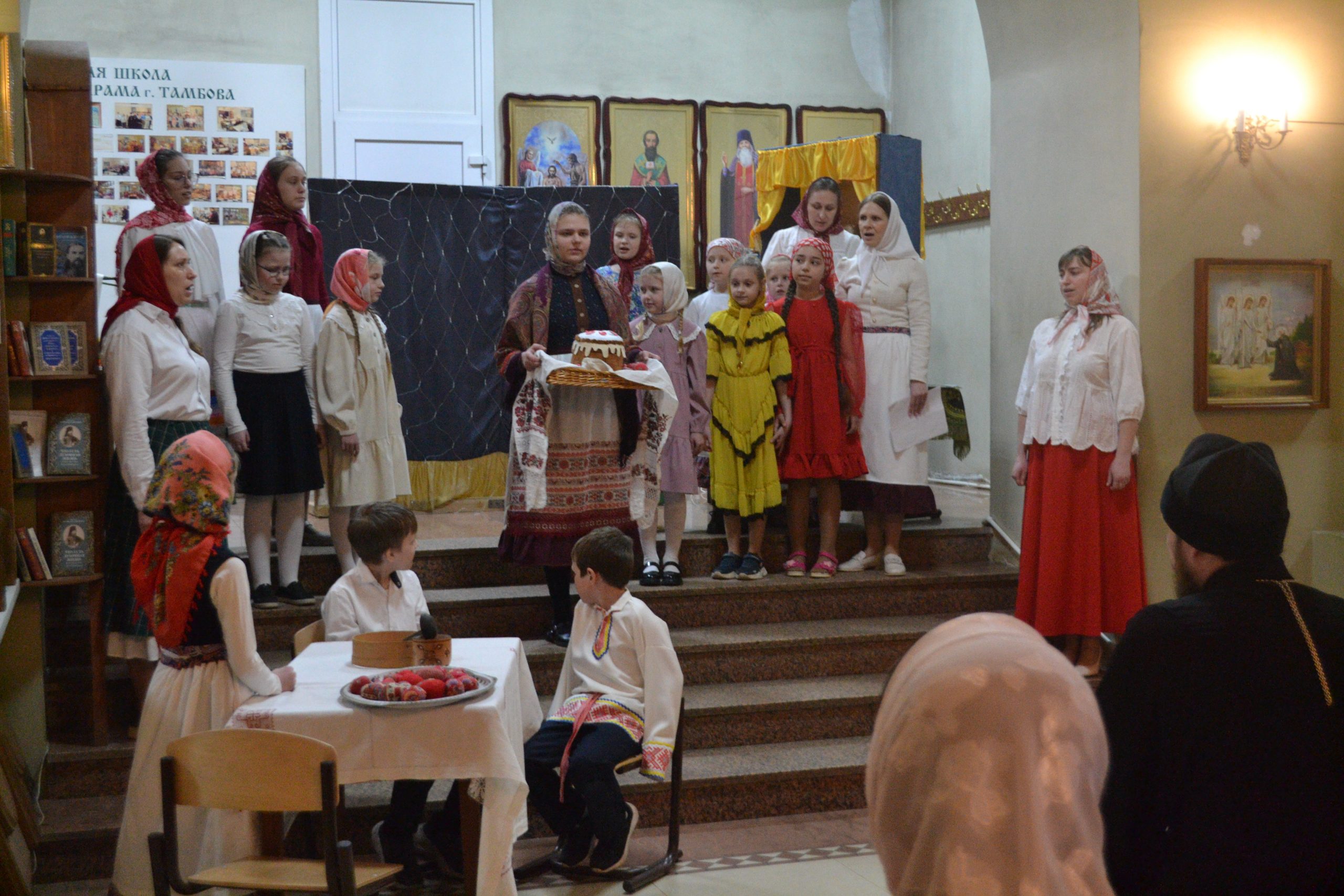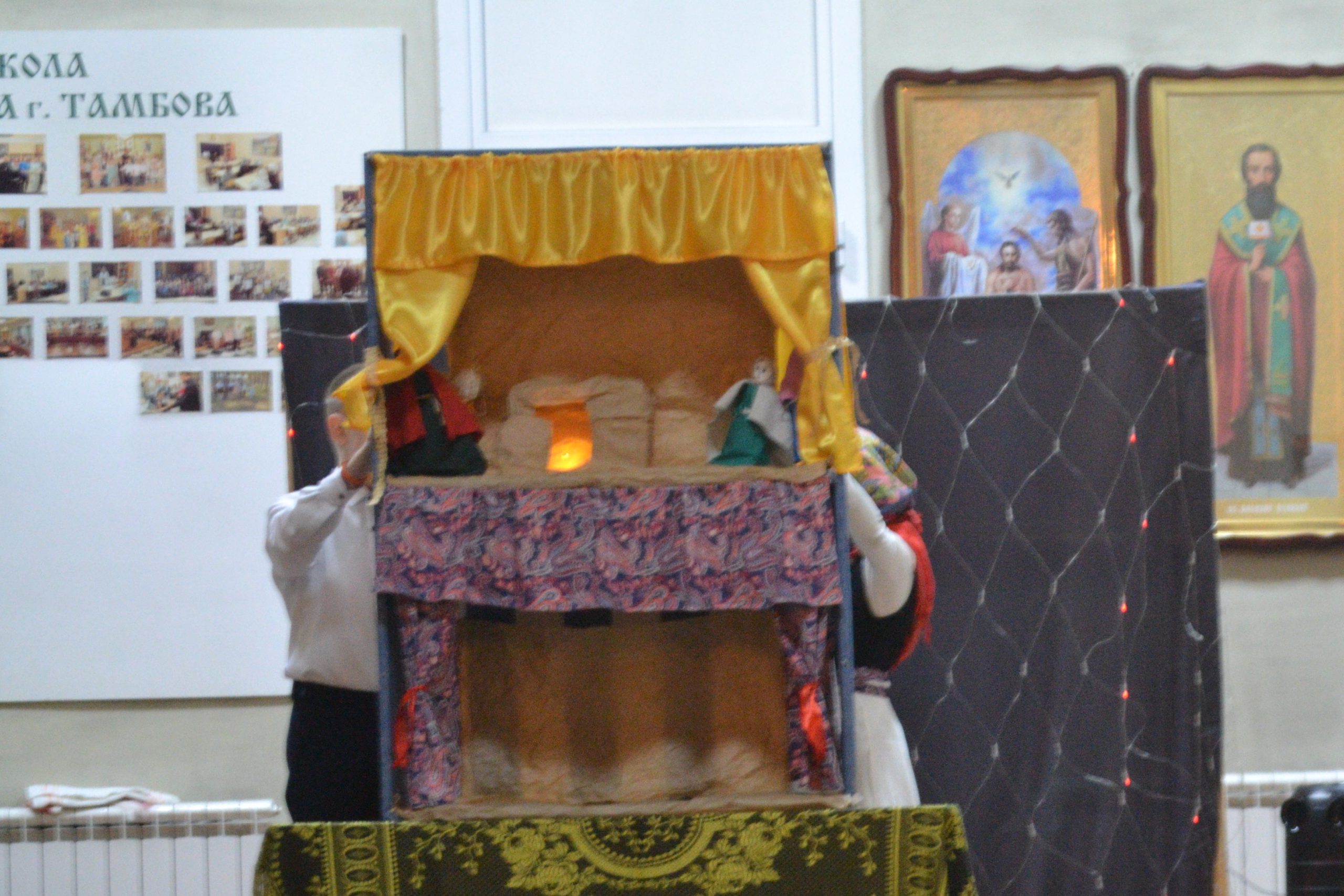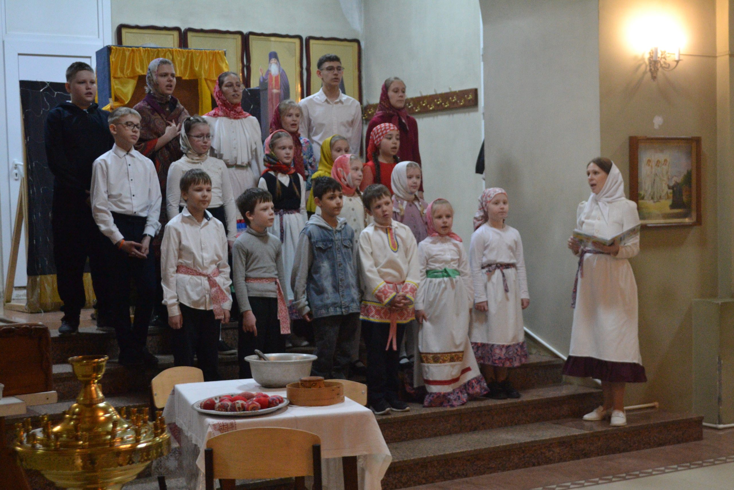 В начале дети показали небольшой кукольный спектакль, рассказывающий о событиях у Гроба Господня, когда жены-мироносицы стали первыми свидетелями Воскресения Христова.