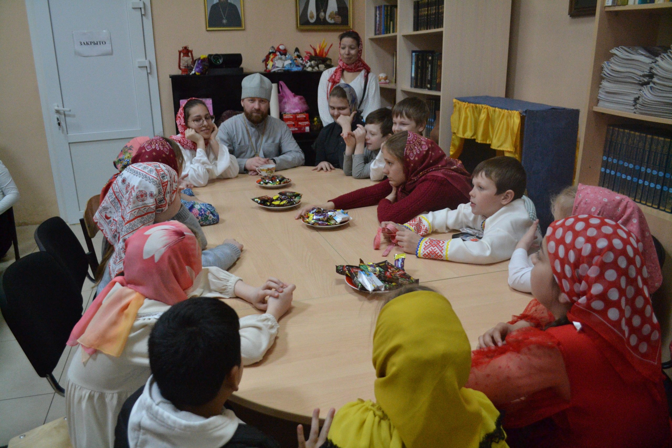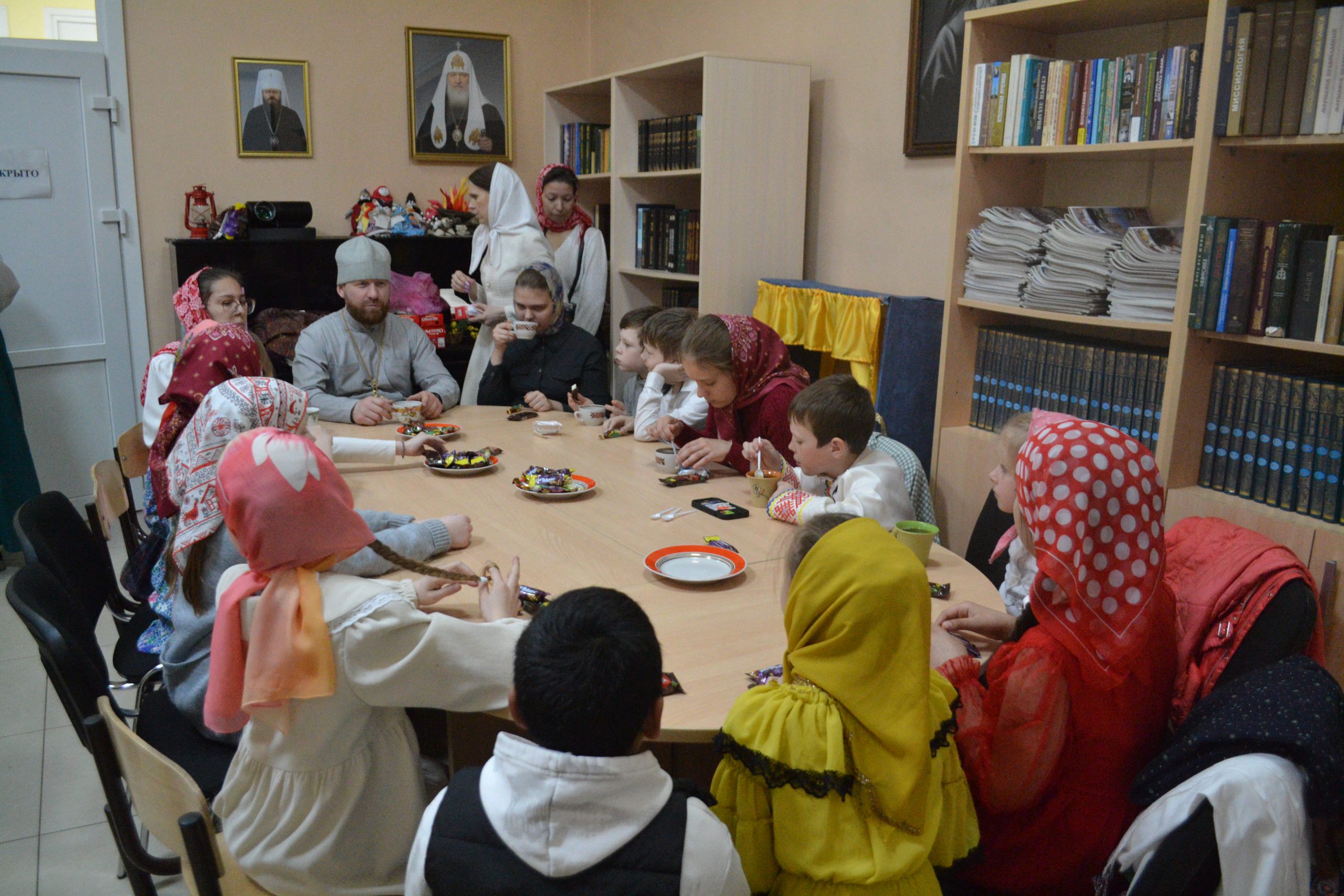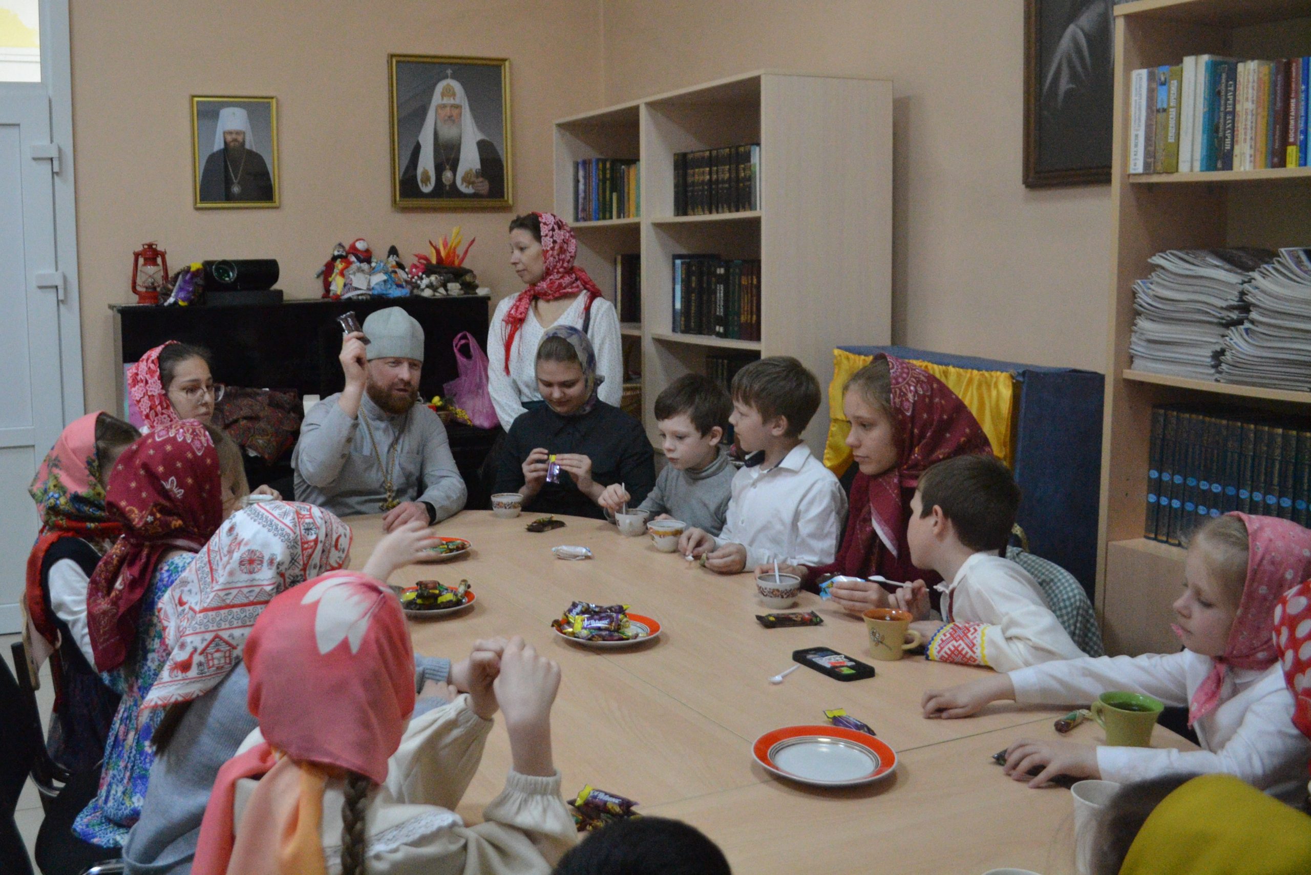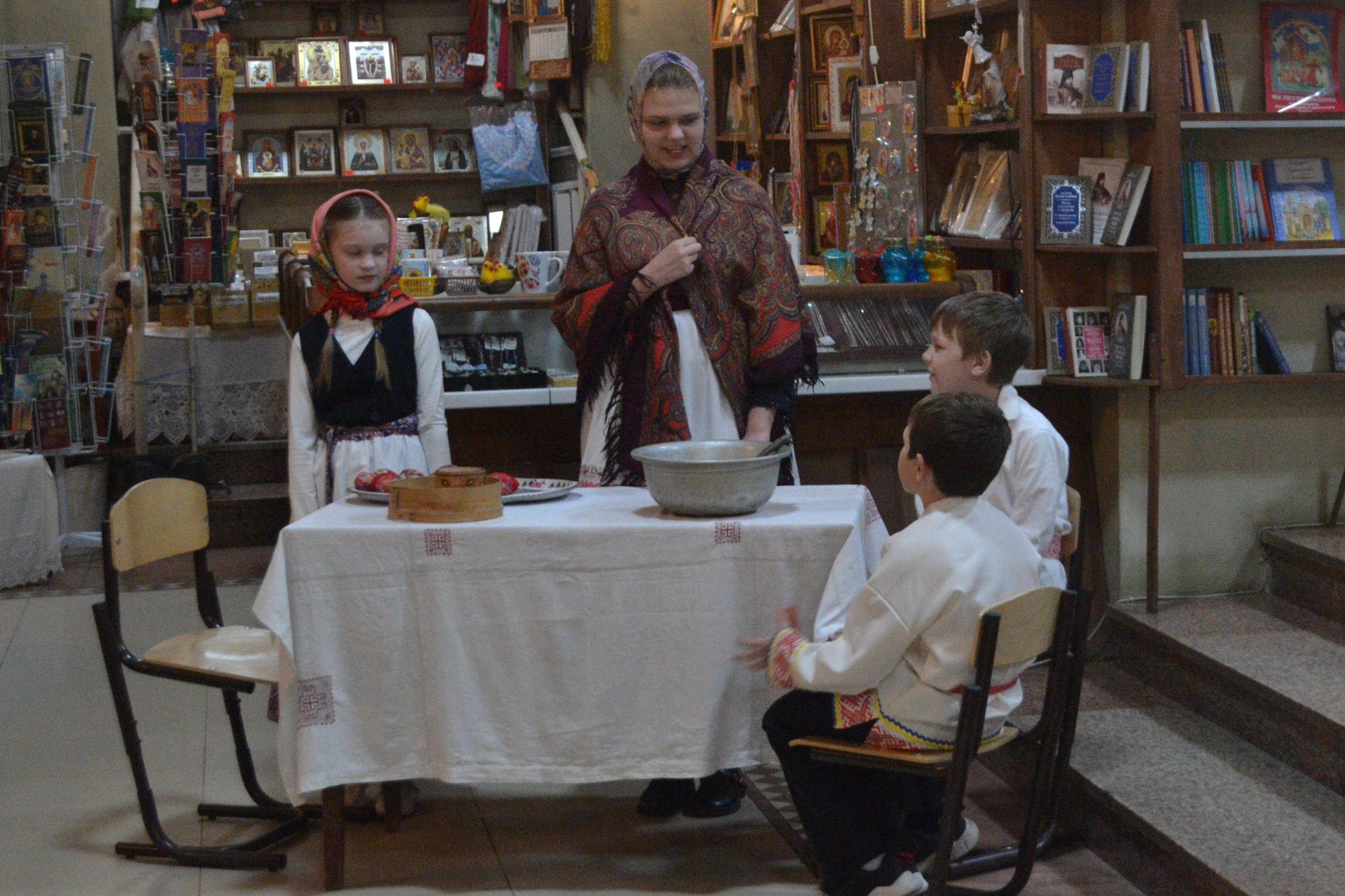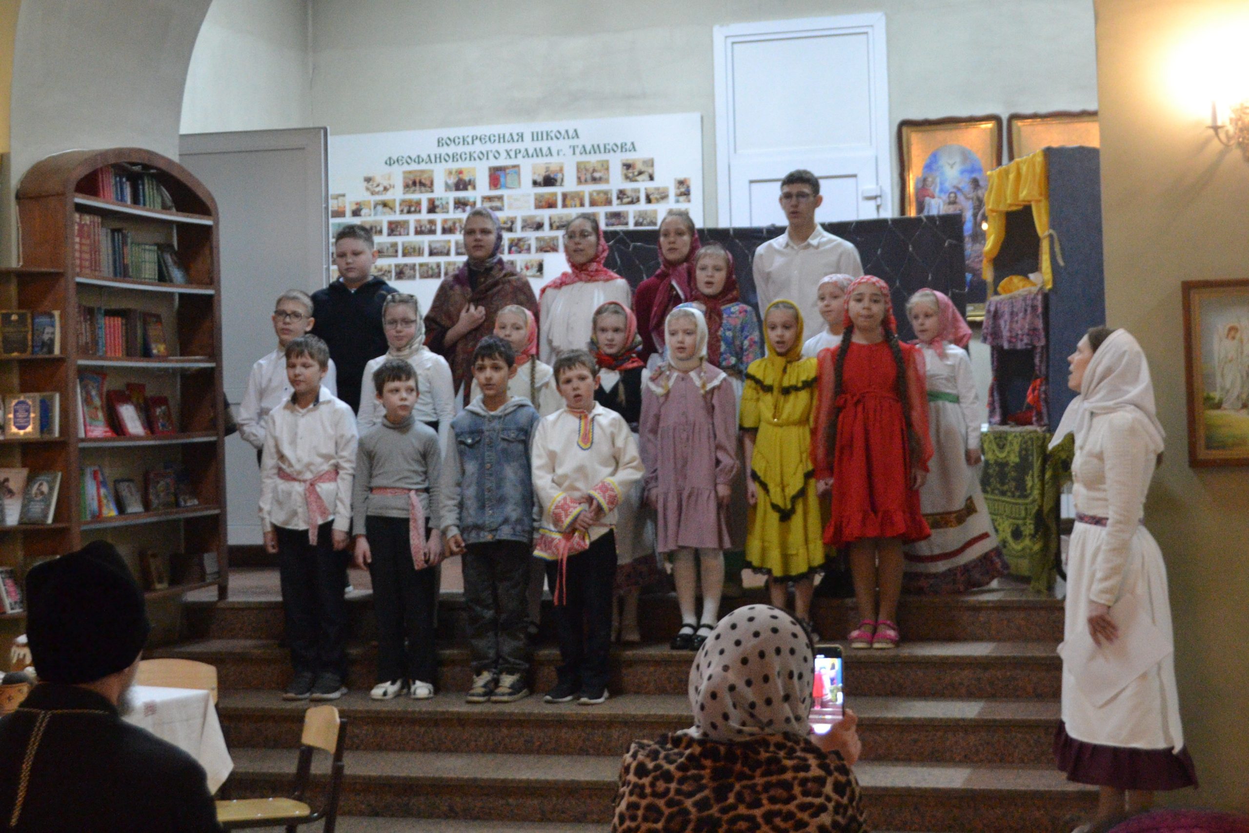 В начале дети показали небольшой кукольный спектакль, рассказывающий о событиях у Гроба Господня, когда жены-мироносицы стали первыми свидетелями Воскресения Христова.