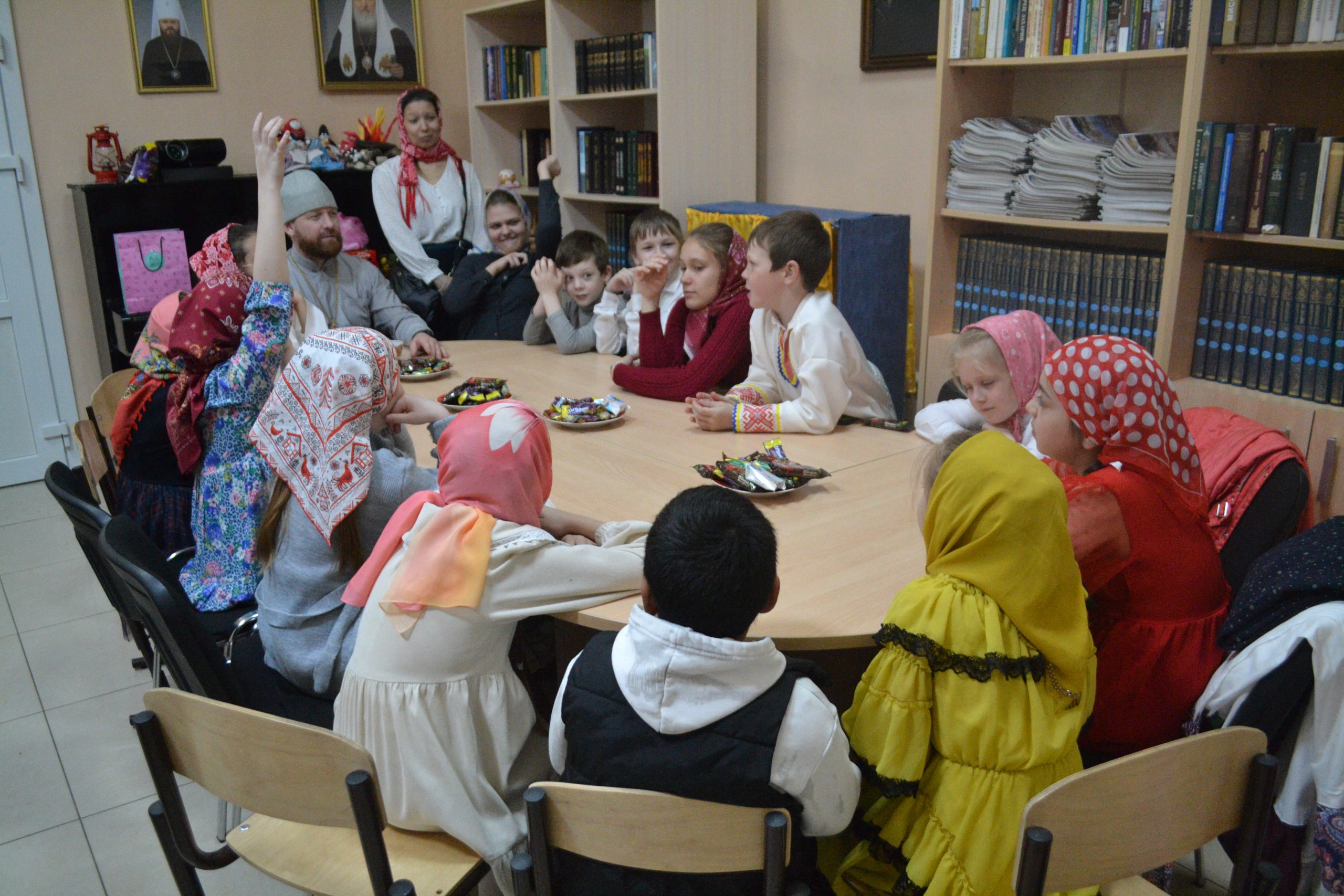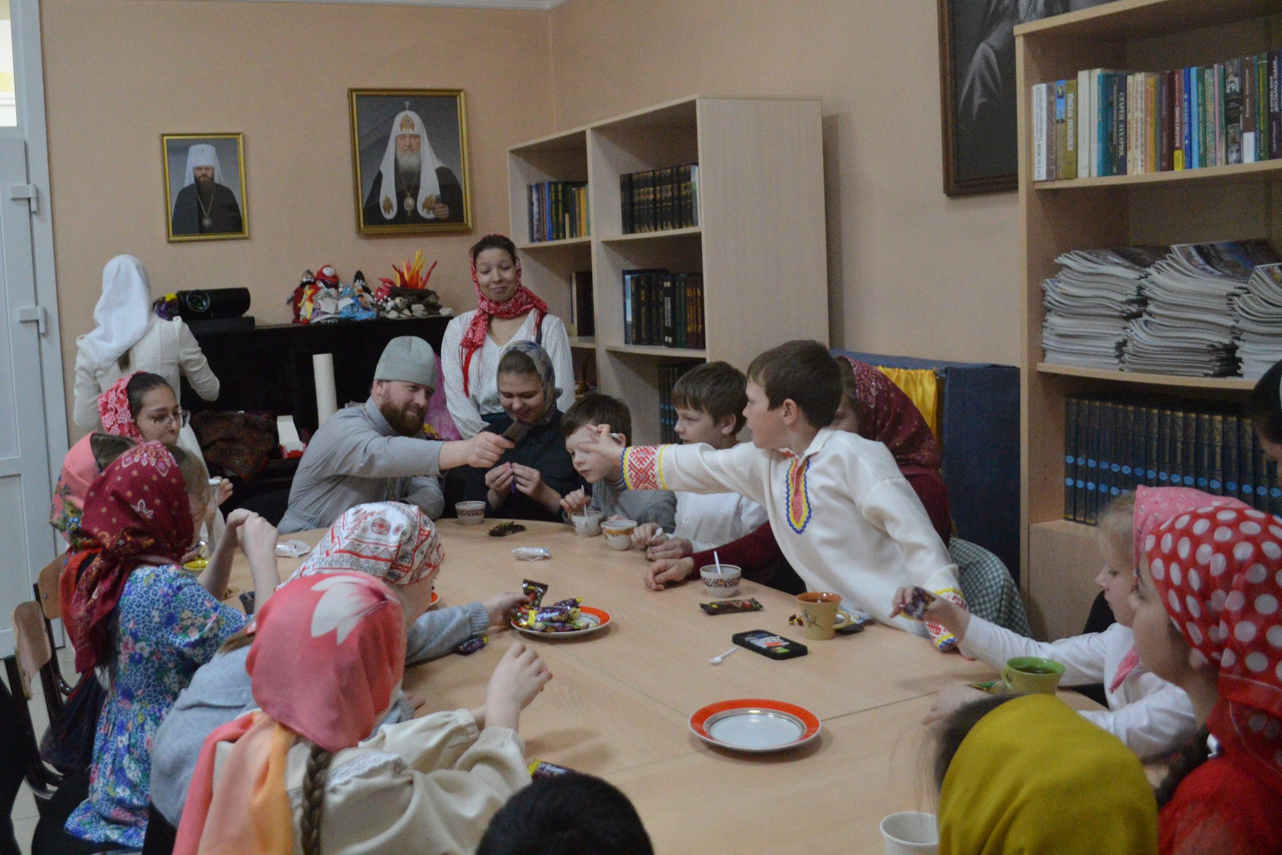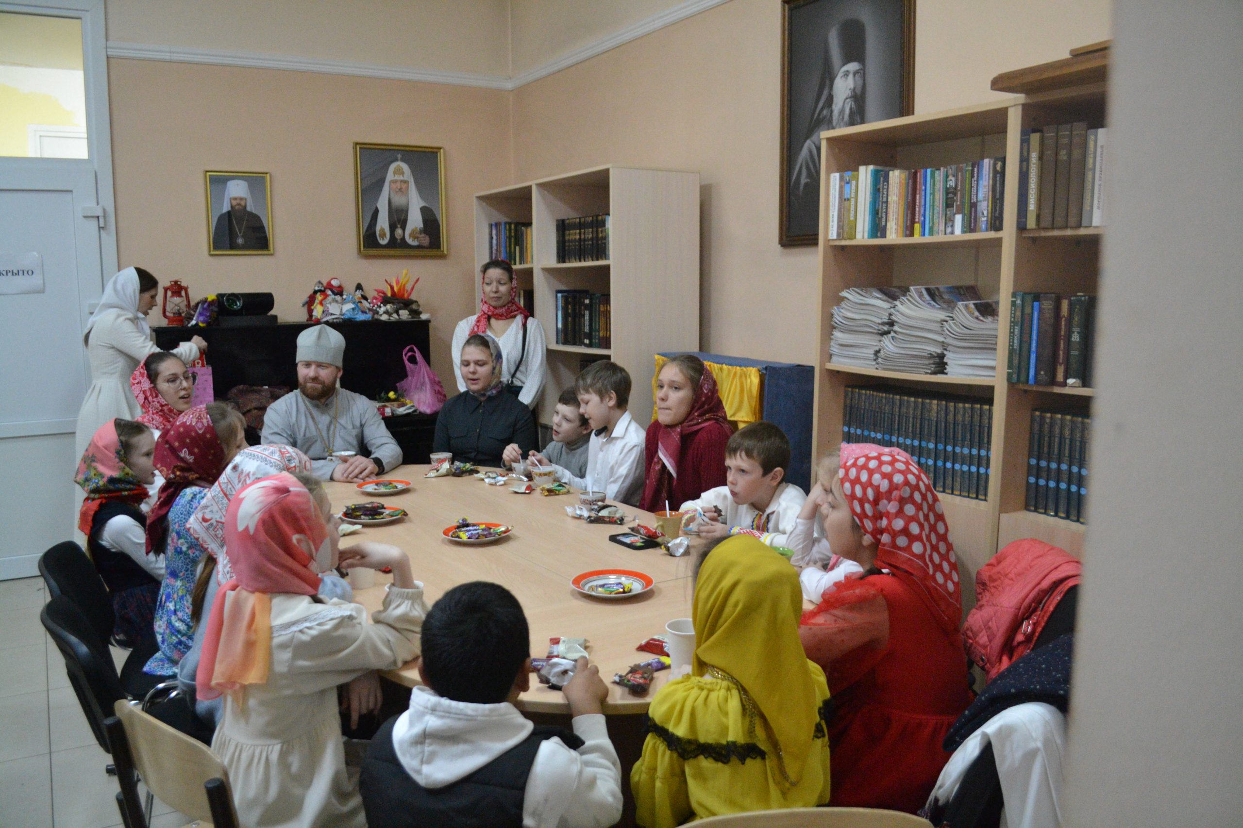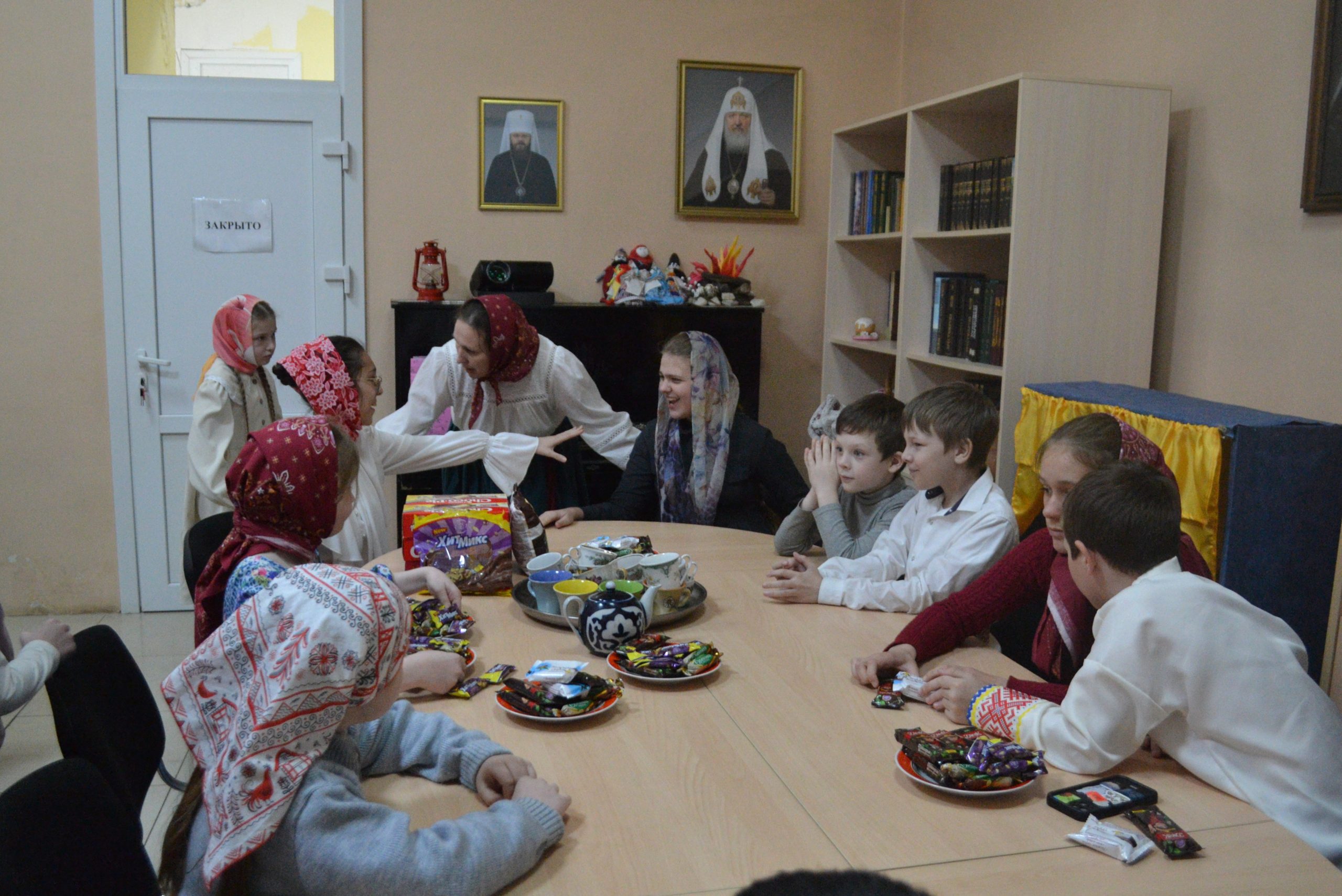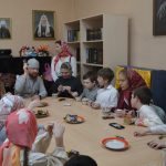 В начале дети показали небольшой кукольный спектакль, рассказывающий о событиях у Гроба Господня, когда жены-мироносицы стали первыми свидетелями Воскресения Христова.