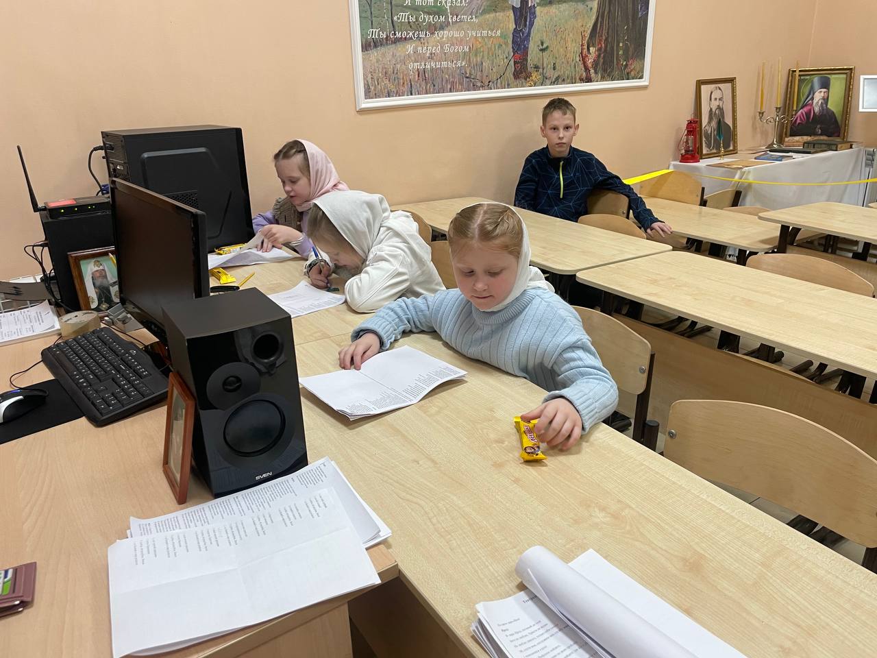 4 января, после Божественной литургии, занятие воскресной школы при храме посетил настоятель священник Димитрий Пимкин.
