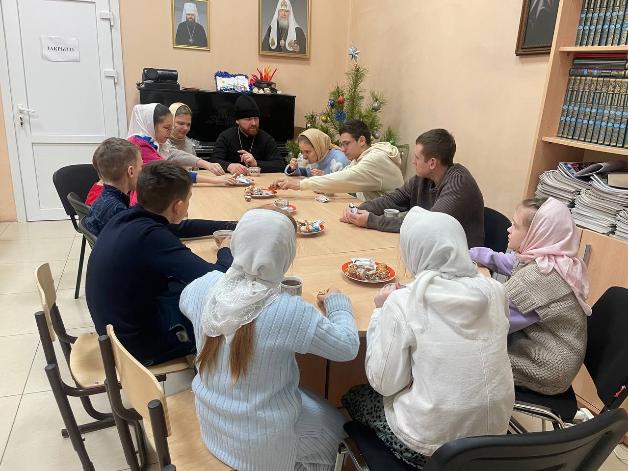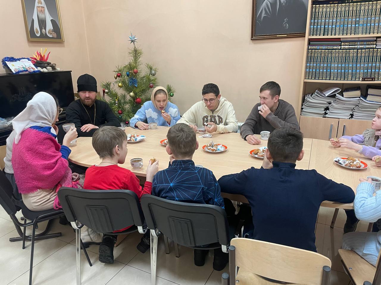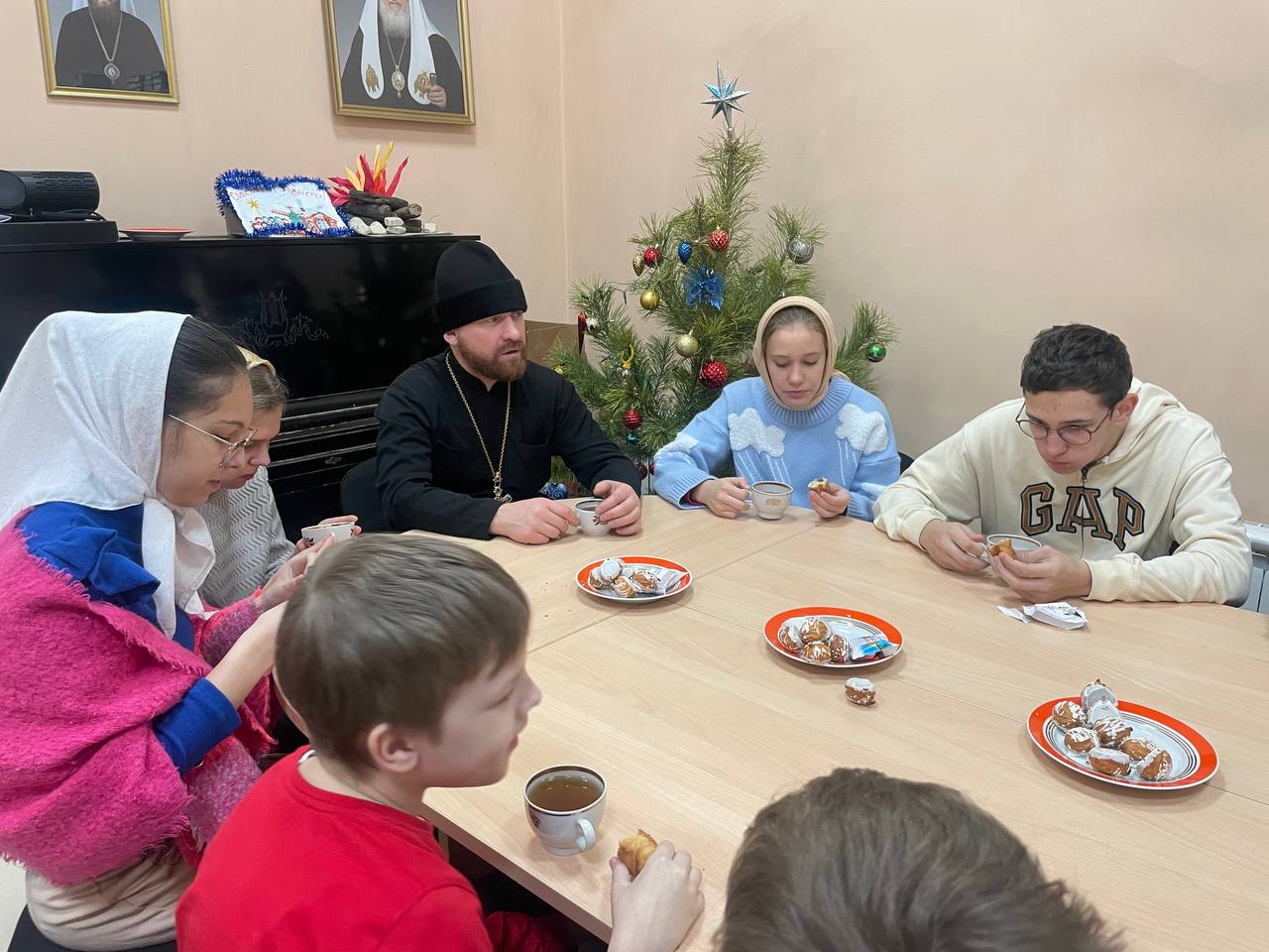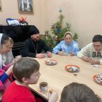 Встреча прошла в тёплой, семейной атмосфере. Перед началом чаепития дети и взрослые вместе помолились, после чего состоялась беседа на тему подготовки к празднику Рождества Христова.