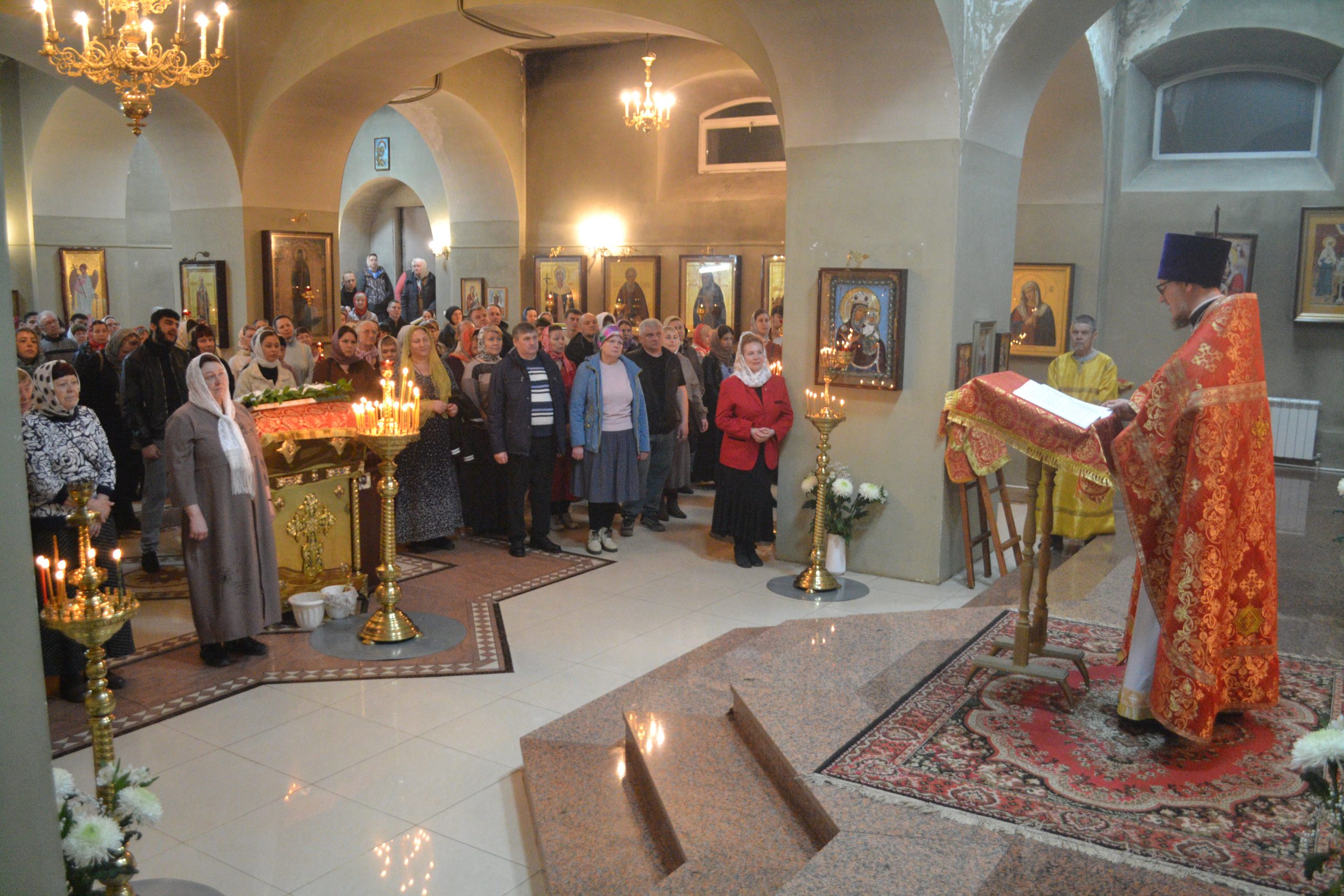За Пасхальной заутреней клирик храма священник Николай Киреев прочитал Слово огласительное святителя Иоанна Златоуста на Святую Пасху.