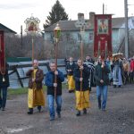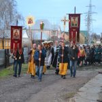 В воспоминание погребения Христова, сошествия Его во ад и победы над смертью священнослужители поднимали Плащаницу над главами и совершали тихий крестный ход вокруг храма, во время которого пелось «Святый Боже, Святый Крепкий, Святый Безсмертный, помилуй нас…» Затем Плащаницу поднесли к открытым Царским вратам и положили посредине храма в ознаменование того, что Спаситель неразлучно пребывает с Богом Отцом и что Он Своими страданиями и смертью снова отверз нам двери рая.