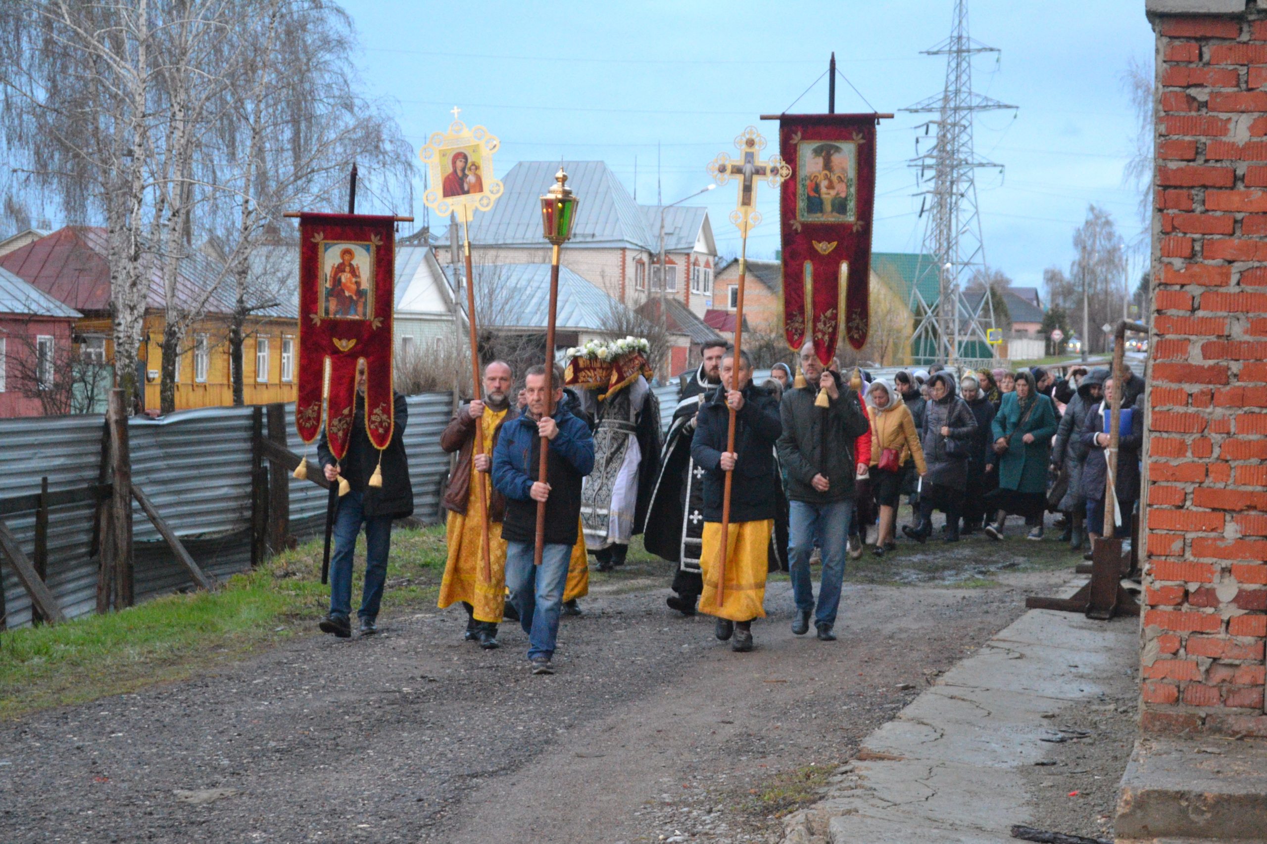 В воспоминание погребения Христова, сошествия Его во ад и победы над смертью священнослужители поднимали Плащаницу над главами и совершали тихий крестный ход вокруг храма, во время которого пелось «Святый Боже, Святый Крепкий, Святый Безсмертный, помилуй нас…» Затем Плащаницу поднесли к открытым Царским вратам и положили посредине храма в ознаменование того, что Спаситель неразлучно пребывает с Богом Отцом и что Он Своими страданиями и смертью снова отверз нам двери рая.