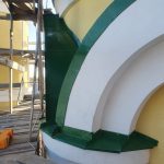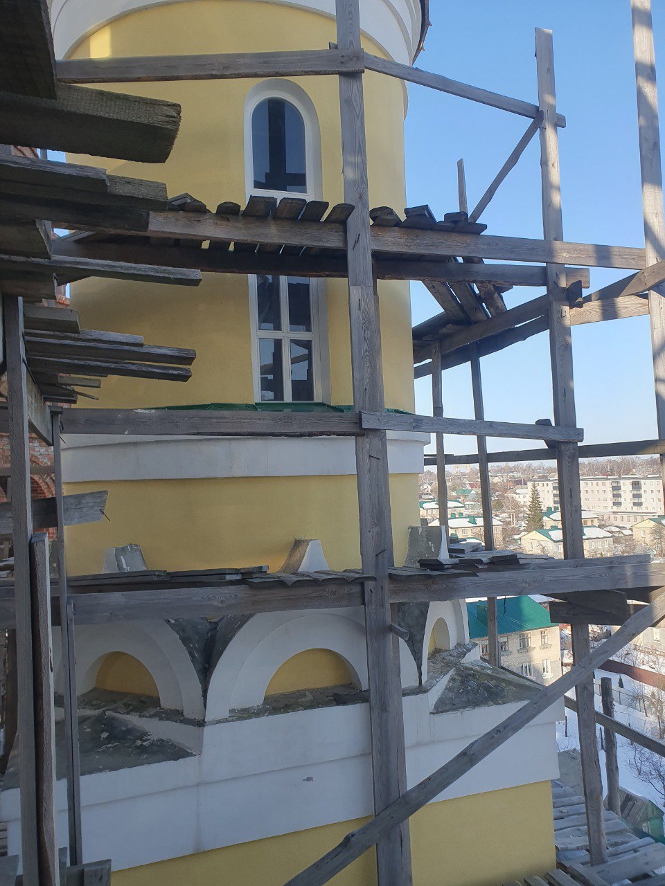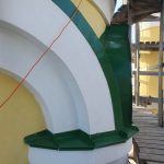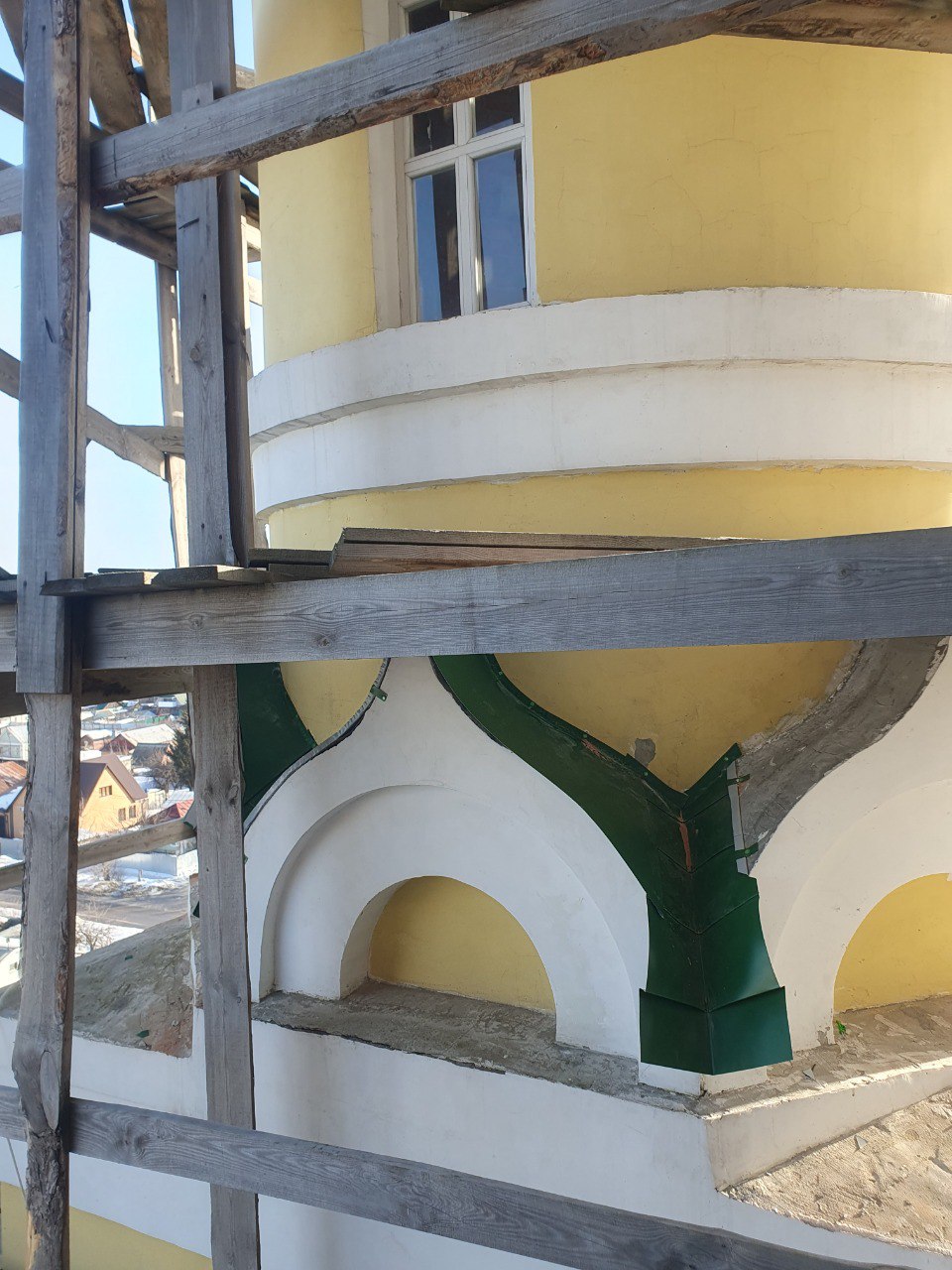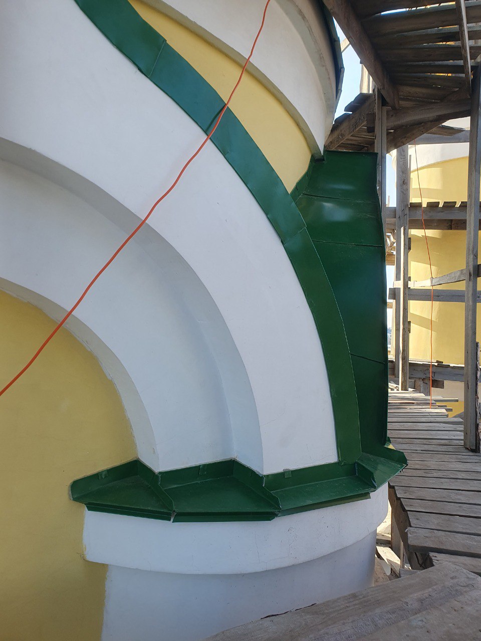 В частности, работы продолжаются на одном из малых куполов, где ведётся устройство подоконников. Из-за сложной геометрии элементов — с закруглениями, сужениями и расширениями — многие решения принимаются непосредственно на месте. Для повышения качества и удобства работы используются специальные, в том числе самодельные, приспособления.