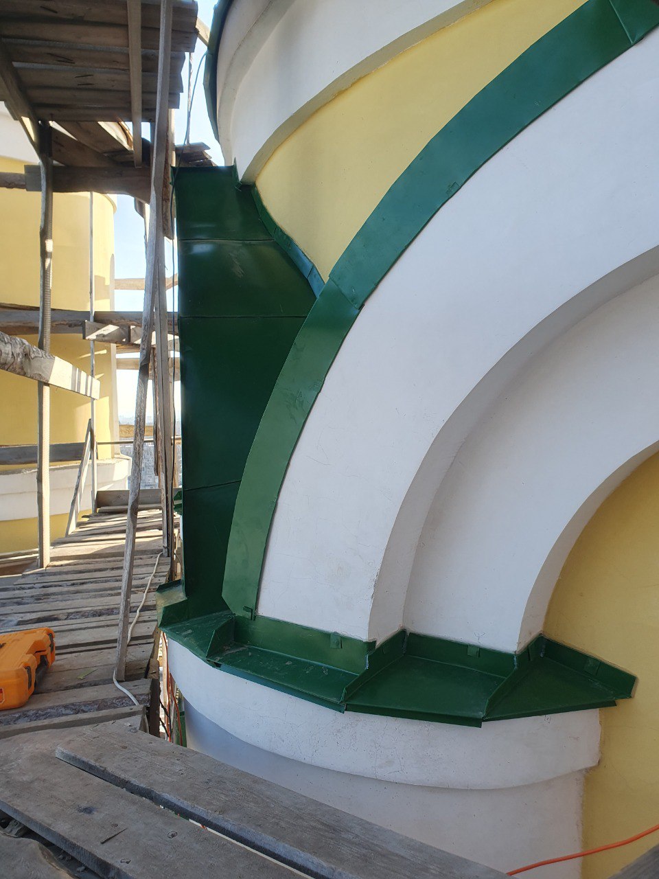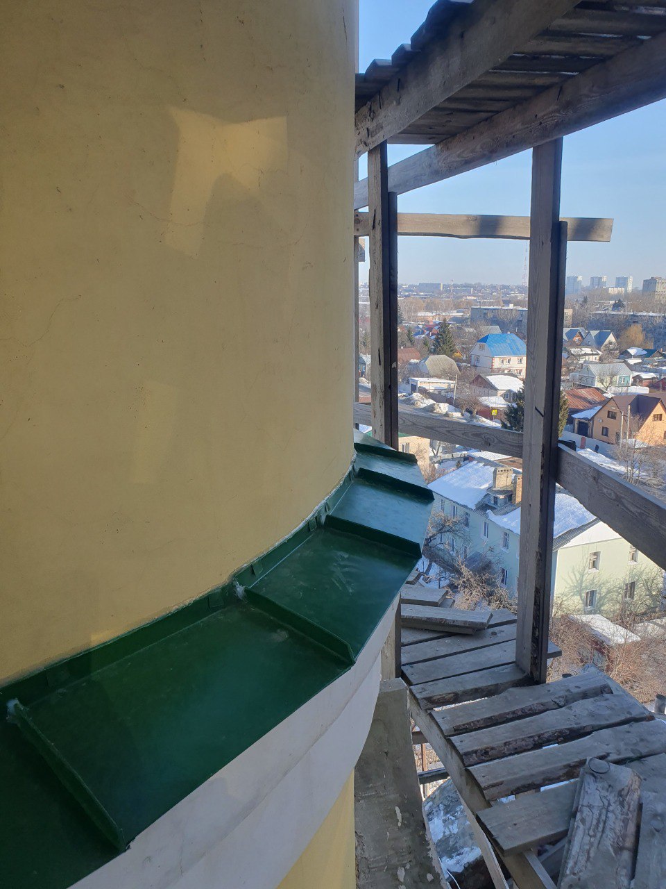 В настоящее время завершён важный этап — устройство кровли центрального купола. Кровельщики обрамили выступающие части купола листовым металлом, все стыки тщательно загерметизированы. Проведённые работы позволят надежно защитить конструкцию от воздействия осадков и обеспечить её долговечность.